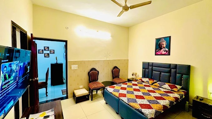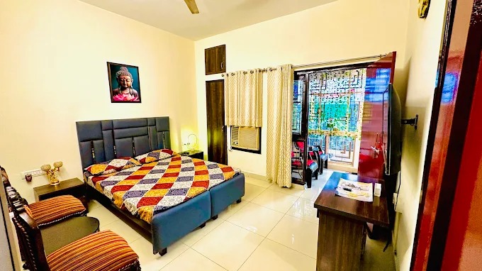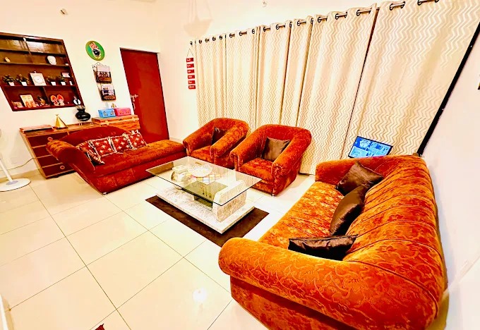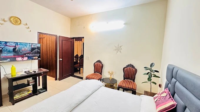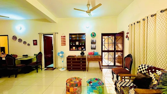 Easy inn 3BHK homestay is ideal for families or groups seeking both privacy and togetherness. This fully air-conditioned homestay features three elegantly furnished bedrooms, each with cozy bedding, ample storage, and soothing garden views through large windows that fill the rooms with natural light. Living Area A separate, well-appointed living area offers a warm space to unwind or entertain. Shared Kitchen Prepare your own meals with ease in the shared kitchen perfect for longer stays. Thoughtfully designed for comfort, functionality, and style, this homestay blends homely warmth with the convenience of modern living.